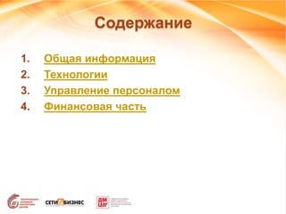 Документ представляет собой отчет по исследованию аутсорсинговых контактных центров в Украине за 2013 год, включающий данные о росте количества центров и рабочих мест, а также анализ технологий и управления персоналом. Отчет выявляет существенные изменения в структуре центров, акцентируя внимание на мультисервисных и справочных акц, а также на росте интереса к информационной безопасности и CRM. Финансовая часть заключает, что объем рынка мультисервисных акц в Украине увеличился в три раза по сравнению с предыдущим годом.