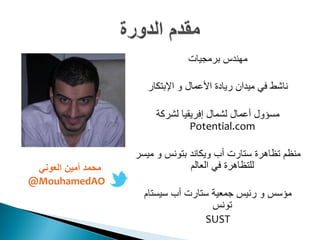 تتناول الوثيقة تحديات البطالة وأهمية ريادة الأعمال كحلول فعالة. يوضح الكاتب محمد أمين العوني كيفية تحويل الأفكار إلى مشاريع ناجحة وكيفية تعزيز الثقة بالنفس والتعلم المستمر لتحقيق النجاح. تركز الوثيقة أيضًا على عناصر نموذج الأعمال والموارد اللازمة لإطلاق المشاريع الناشئة.