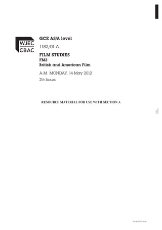 This document contains resource material for a film studies exam, including:
