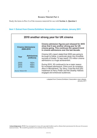 1) A news release showing UK cinema attendance reached a high of 169 million in 2010, partly due to the popularity of 3D films.
