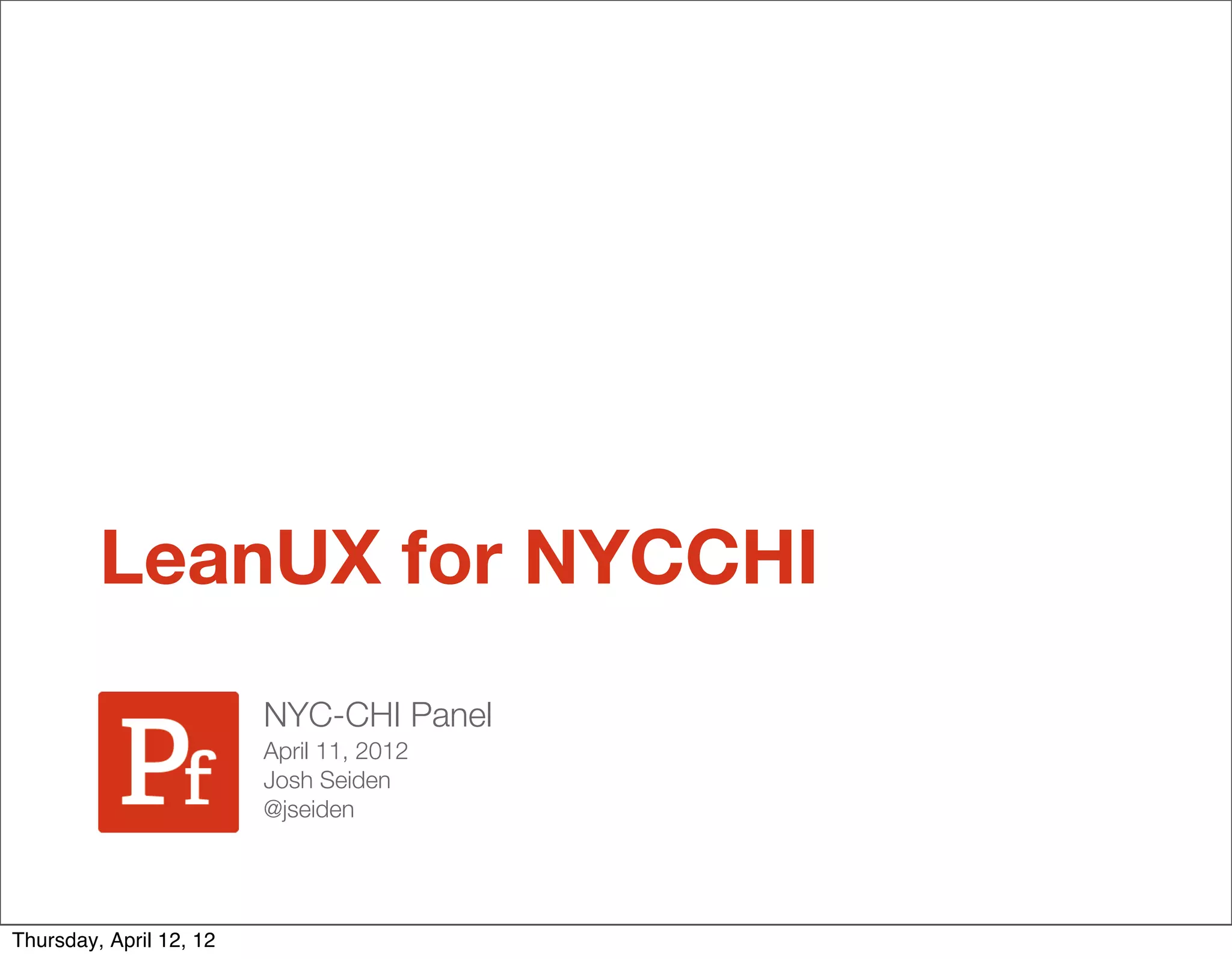 This document contains slides from a presentation by Josh Seiden on Lean UX. Some key points from the presentation include: