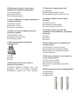 Б) зародиш – бебе – дете – юноша – възрастен 20. Кой термометър отчита температура 20°C?