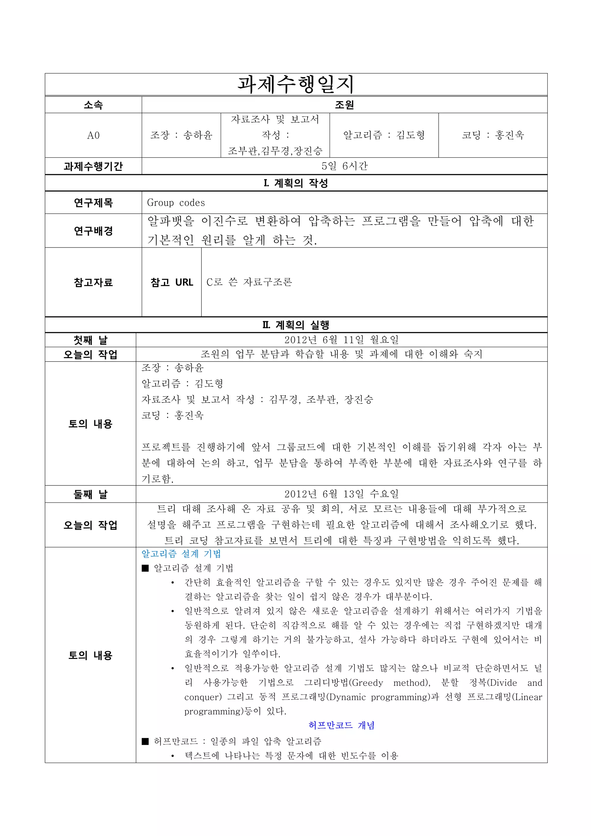 분에 대하여 논의 하고, 업무 분담을 통하여 부족한 부분에 대한 자료조사와 연구를 하