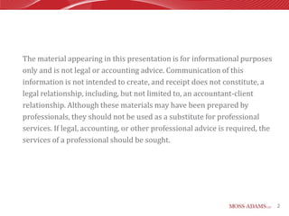 This document provides an overview of scheduled tax changes for 2012 and 2013, including increases to income, capital gains, and Medicare tax rates. It discusses opportunities for tax planning for individuals and businesses before year-end, and notes some decisions that may be best to wait until after the election due to ongoing presidential tax proposals.