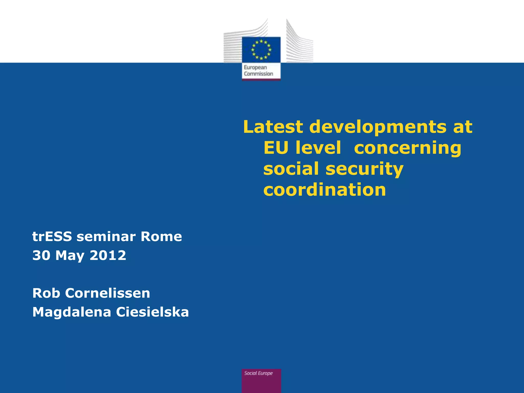 The document summarizes recent developments in EU legislation regarding social security coordination. It discusses the change in the legal basis for coordination rules under the Lisbon Treaty, allowing for qualified majority voting. It also outlines key changes proposed in 2010 to Regulation 883/2004 and 987/2009, including provisions related to posted workers, aircrew members, working in multiple countries, and unemployment benefits for self-employed people. Administrative and judicial developments are also mentioned.