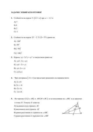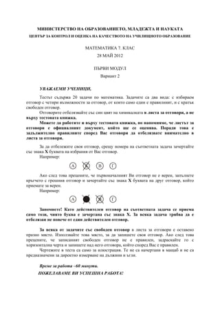 само този, чиято буква е зачертана със знака Х. За всяка задача трябва да е