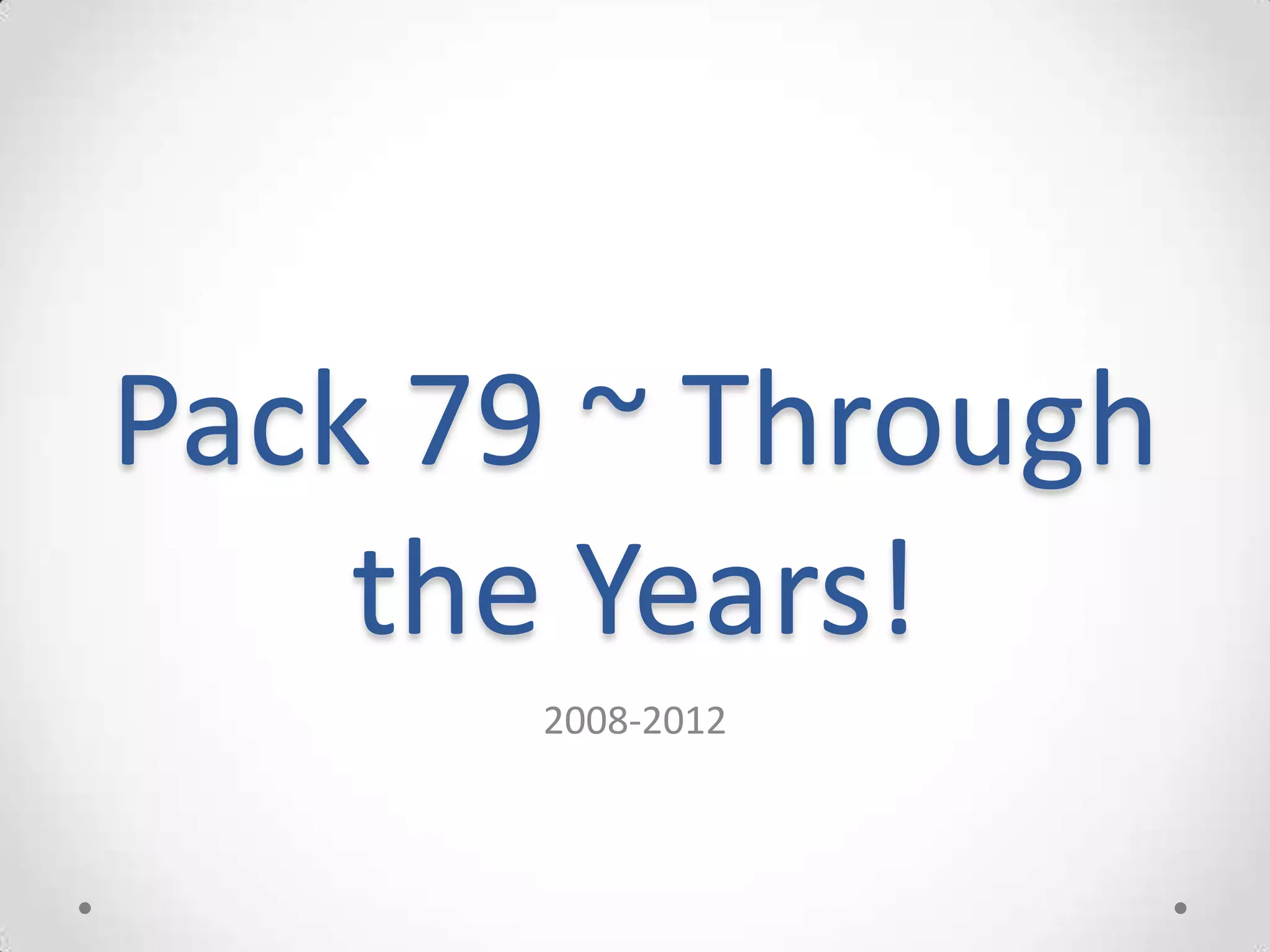 The document outlines the events and activities of Pack 79 from 2008 to 2012, including various ceremonies, derbies, and community service events. It highlights milestones such as crossover ceremonies and participation in local parades. The document also mentions specific accomplishments and gatherings that the pack engaged in during these years.