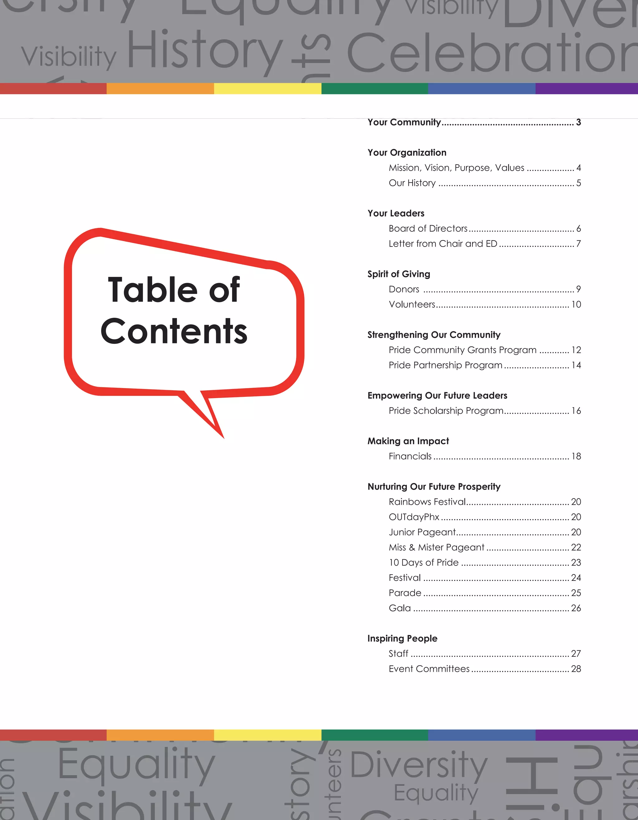 - Phoenix Pride's mission is to celebrate and promote the history, diversity and future prosperity of the Phoenix LGBTQ community.