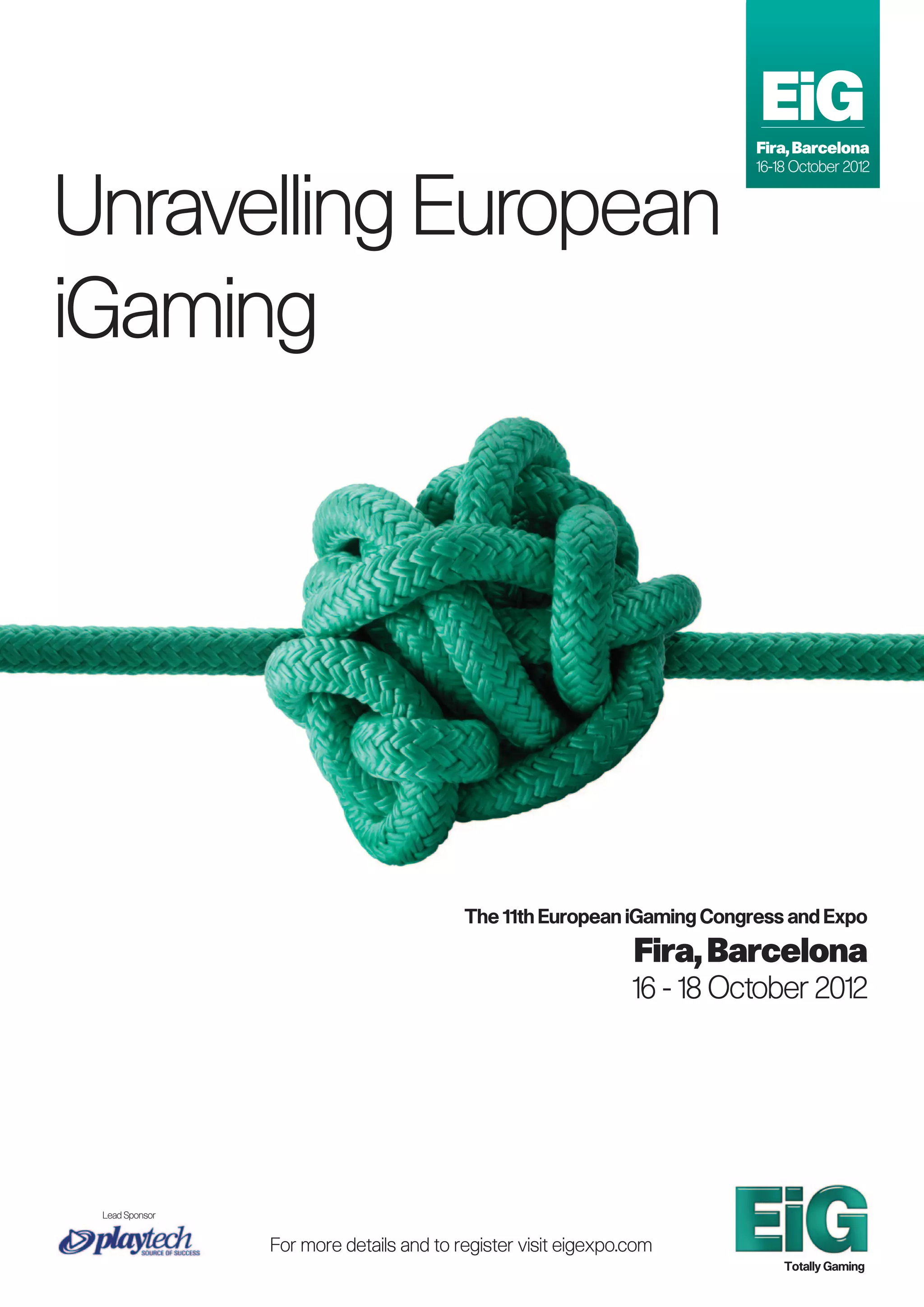 The document provides information about the 11th European iGaming Congress and Expo taking place from October 16-18, 2012 in Barcelona, Spain. Over the three days, the event will feature panel discussions, case studies, and sessions on key topics in the iGaming industry including social gaming, mobile gaming, regulations, and new business opportunities. It will bring together around 1,700 industry professionals across five conference theaters and include an expo hall with over 80 exhibitors.