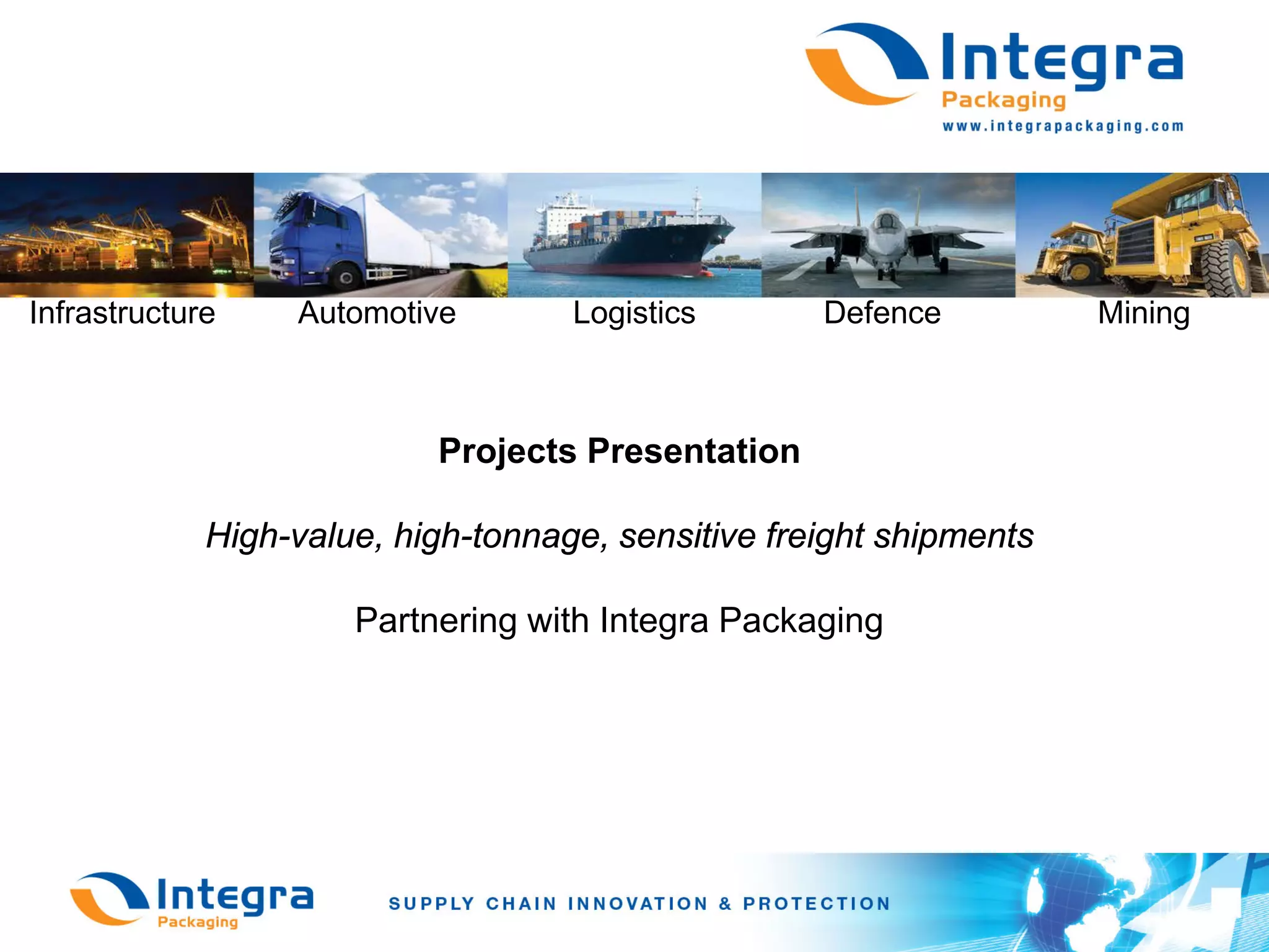 This document summarizes Integra Packaging's capabilities in packaging and shipping high-value, sensitive freight for clients in industries like defence, mining, infrastructure, and logistics. It provides examples of packaging solutions Integra has provided for specific clients, highlighting benefits like on-time shipping, protection of goods, and reduced costs and claims. Integra handles both domestic and international shipments and has over 300 active clients, 85% of which are involved in export.