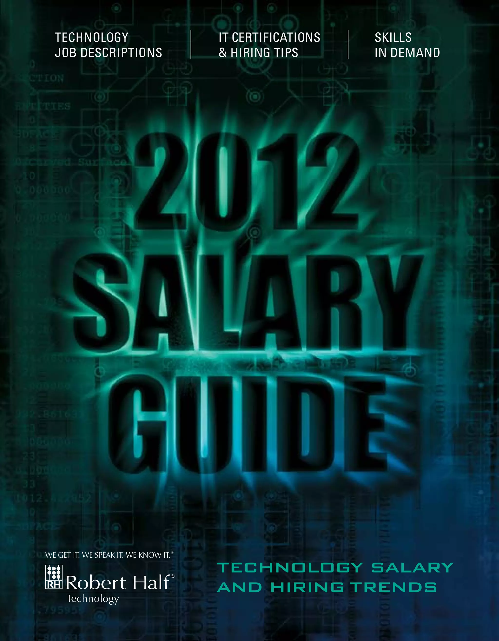 This document provides information about technology salaries and hiring trends, including: