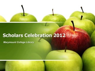 The document summarizes scholarly activities at Marymount College Library from April 2012. It includes: