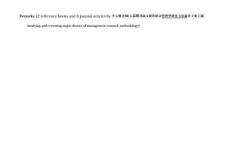 2) The reference books cover the philosophy of research design and synthesizing research styles.