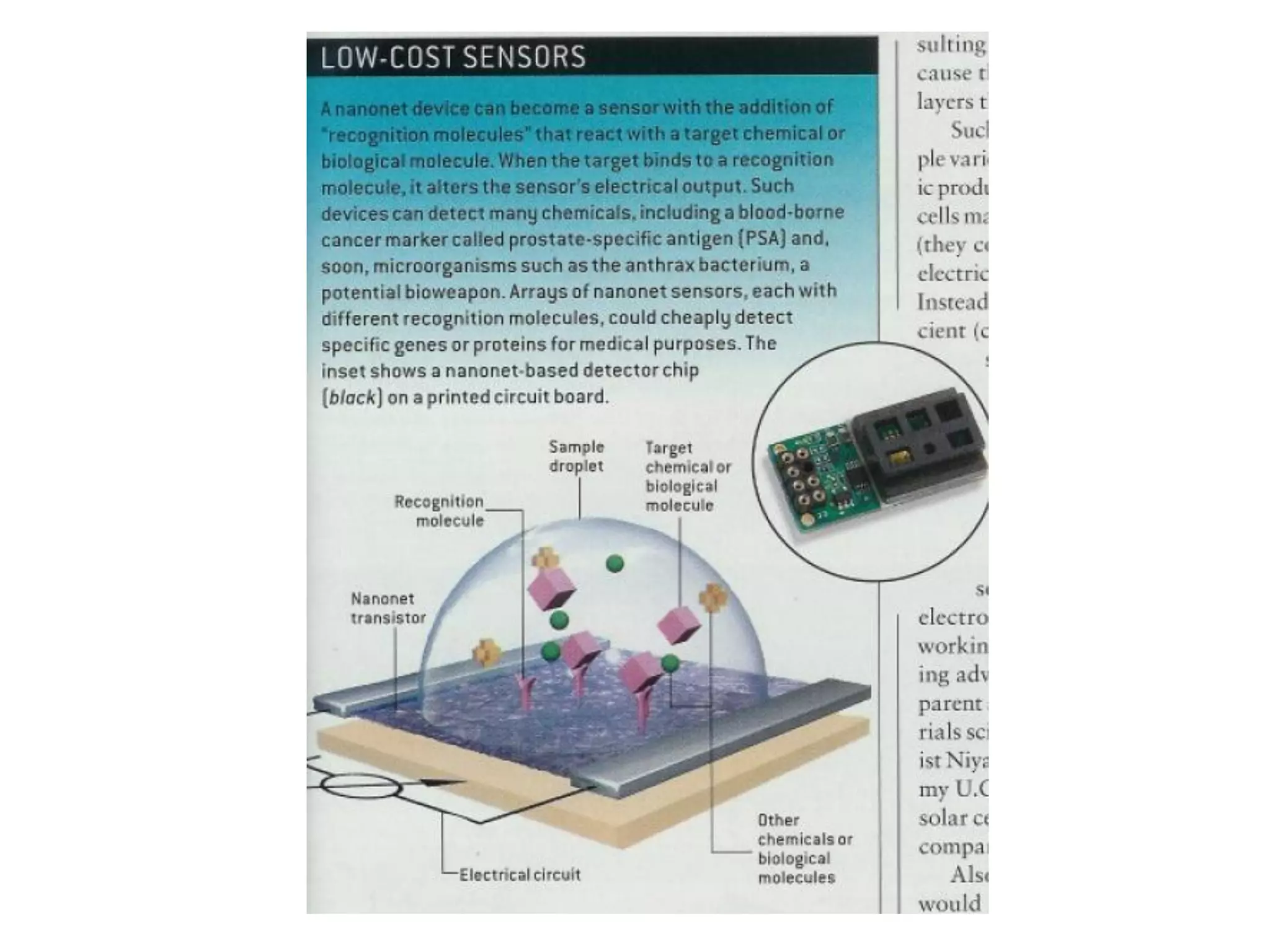 4) Chemical and biological detectors using techniques like microarrays, carbon nanotubes, and surface plasmon resonance.
