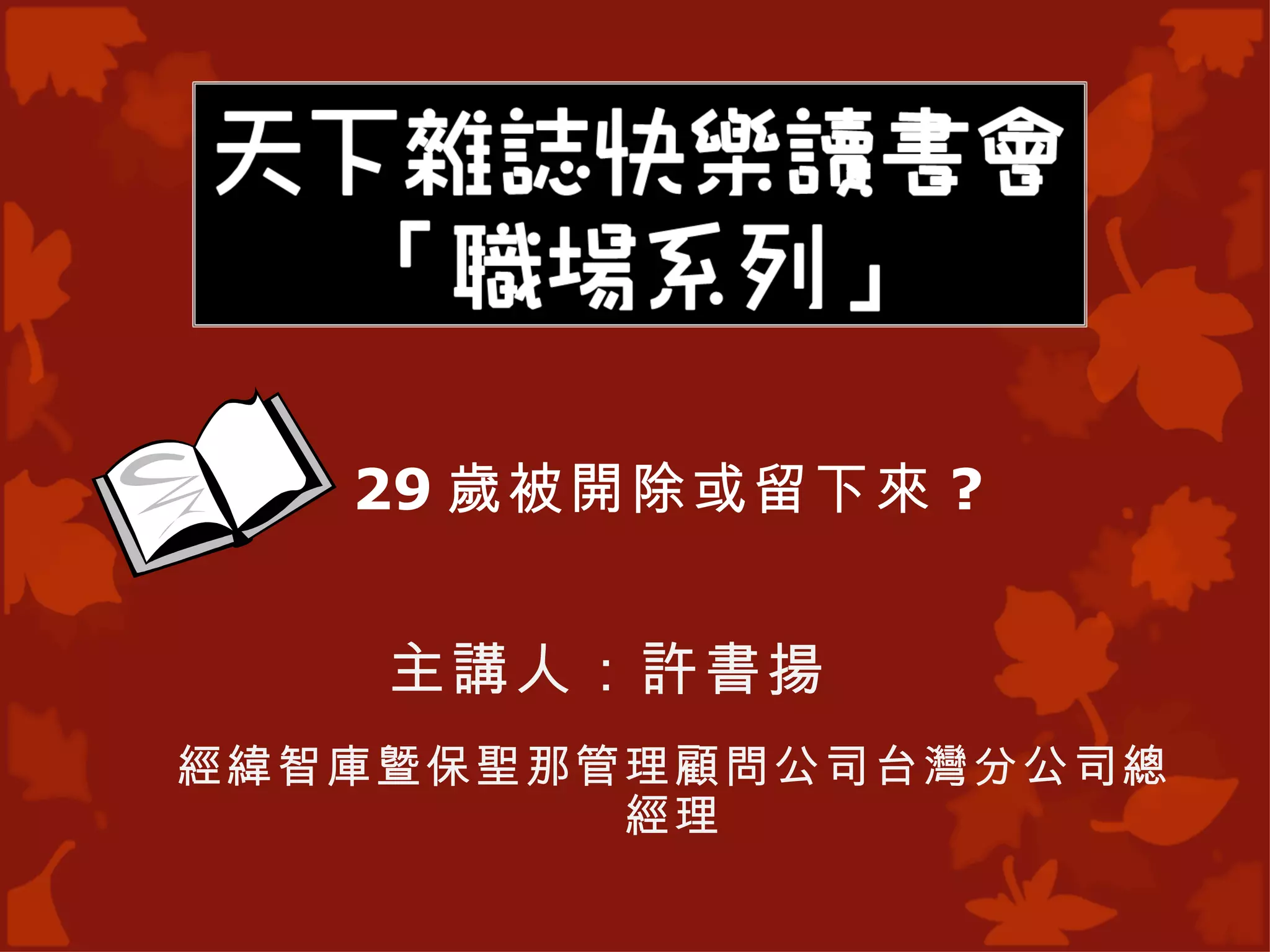 本讲座探讨员工在公司中的生存策略,以及公司对于员工的评价标准。主讲人指出,有些员工虽然工作能力强,但由于缺乏人际交往能力或负面心态,依然可能被解雇。相对而言,能够积极面对工作、处理人际关系、认同公司价值观的员工更可能获得长久的职业发展。