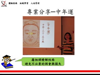 本次讲座探讨了通过相理理解个人性格的重要性,强调面部特征与个性、命运的关联。文中提及了眉、眼、鼻、耳等五官特征及其影响,指出通过观察这些特征可以避免误解及不必要的损失。此外,强调了中年运势的改善与气色及五官的平衡关系。