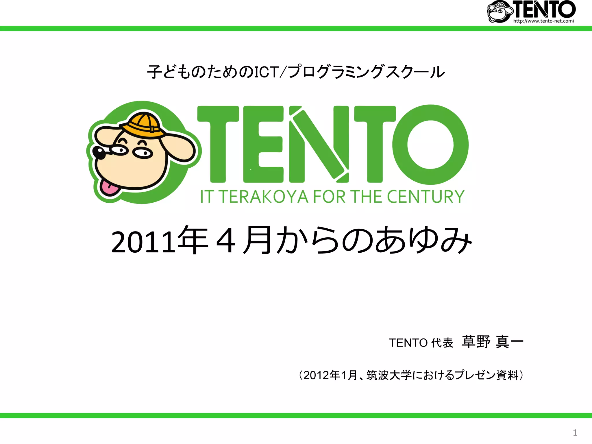 TENTO 代表 草野 真一 (2012年1月、筑波大学におけるプレゼン資料) 1