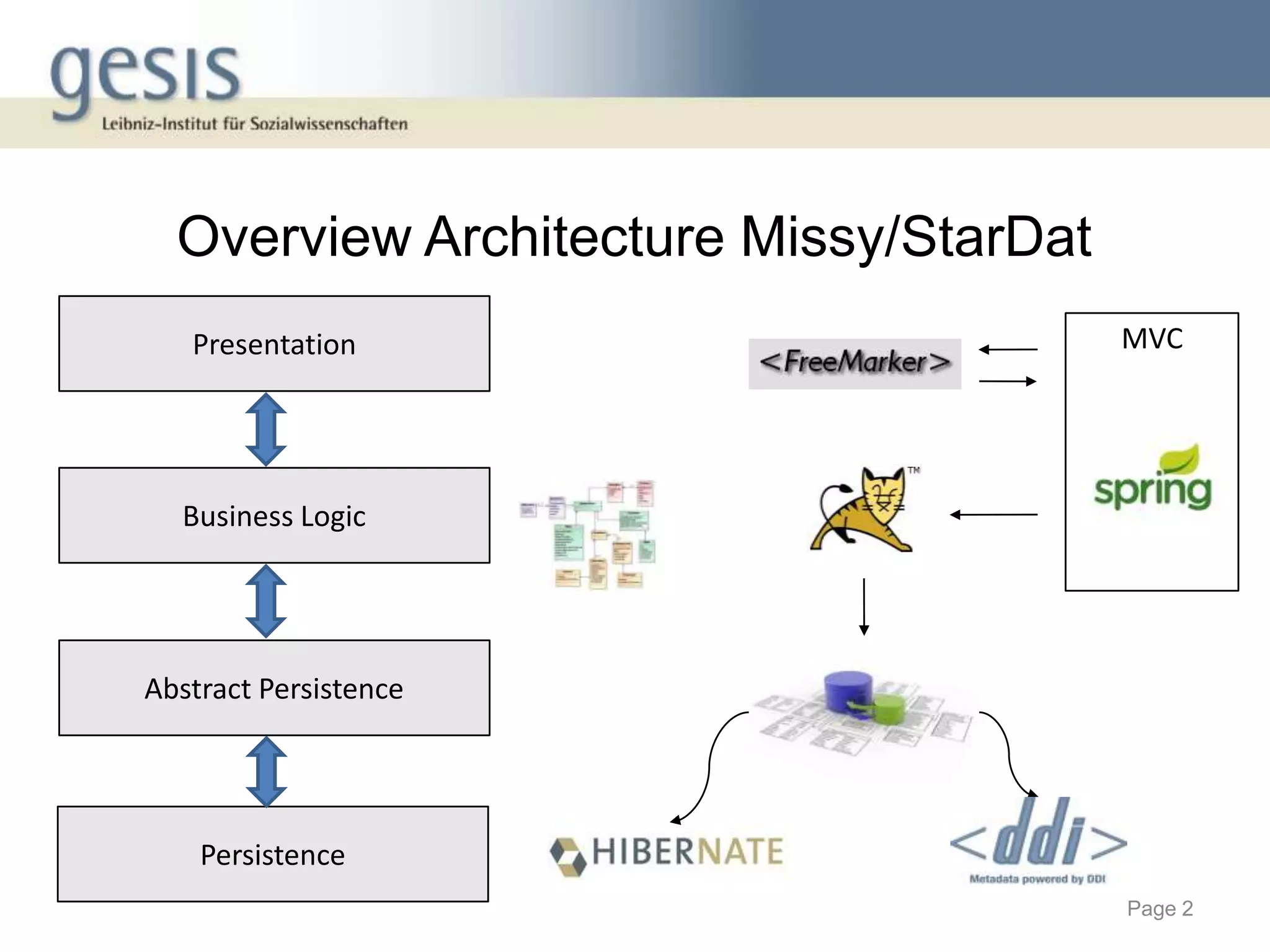 The document discusses using a model-view-controller (MVC) architecture to manage data modeling projects. It describes using an abstract data module based on the DDI ontology with concrete modules for each project that inherit and extend the abstract module. A RESTful interface is proposed to access resources identified by URIs. The abstract data model is implemented as domain classes with attributes and relations according to MVC and can generate views, storage models, and abstract persistence APIs. Extending the DDI ontology allows projects to add custom fields while maintaining compatibility. Sharing source code and data modules between projects via version control is described.
