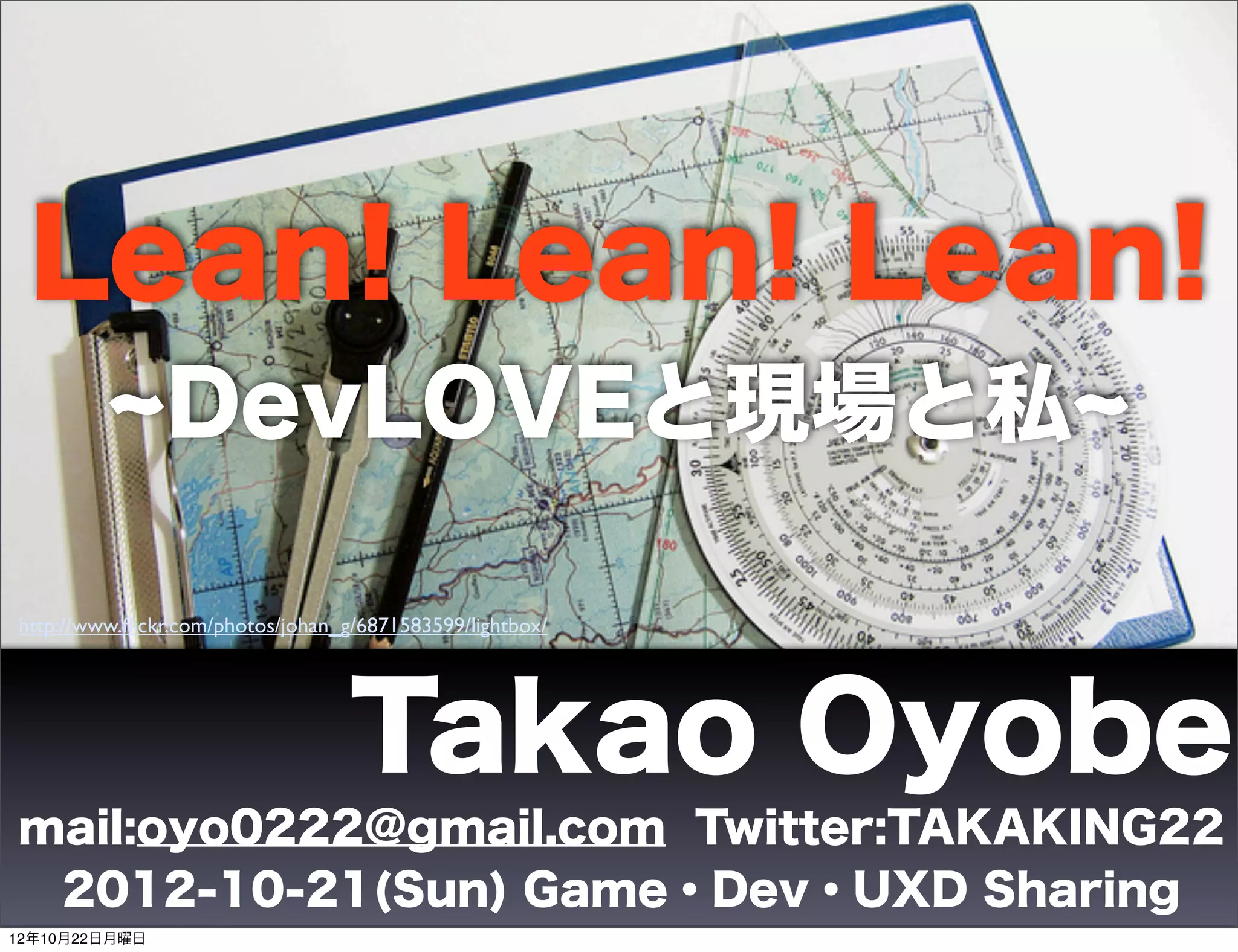 2012年10月21日(日)開催の「ゲーム・開発・UXD 情報交換会」(http://kokucheese.com/event/index/55575/)にて発表した資料。DevLOVEコミュニティとDevLOVE主催の「Lean Startup Night!」のレポートを含む。レポート詳細自体はすばらしきレポートに頼り、Lean Startupを3コミュニティの共通言語であるドラクエを使って説明してみた。