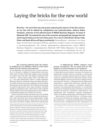 В статье рассматривается многополярностъ XXI века и роль стран БРИКС в формировании новой экономической и геополитической архитектуры мира. Автор, Рубен Варданян, подчеркивает значимость этих стран и их влияние на глобальную экономику в ближайшие 20-30 лет, несмотря на существующие различия и сложности в экономическом взаимодействии между ними. Анализируются также вопросы самидентификации стран и эволюции международных институтов, таких как G20.