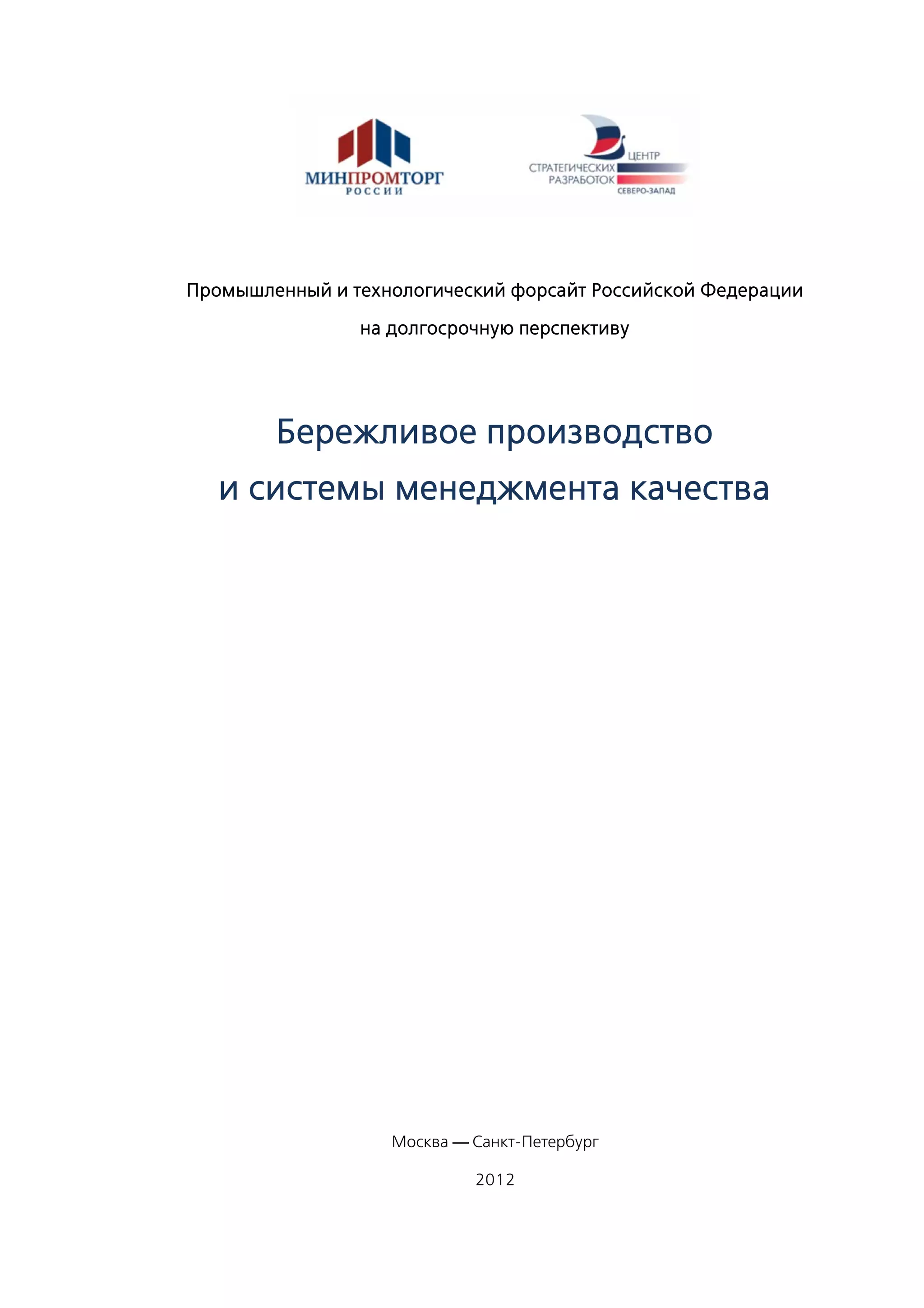 Документ посвящен проекту «промышленный и технологический форсайт российской федерации», который направлен на долгосрочное прогнозирование развития производственного сектора и технологий в России. Основное внимание уделяется системе менеджмента качества и концепции бережливого производства, а также перспективам внедрения инновационных технологий для достижения конкурентоспособности. В документе представлены результаты исследования и рекомендации по обновлению государственной политики в сфере управления технологическим развитием.
