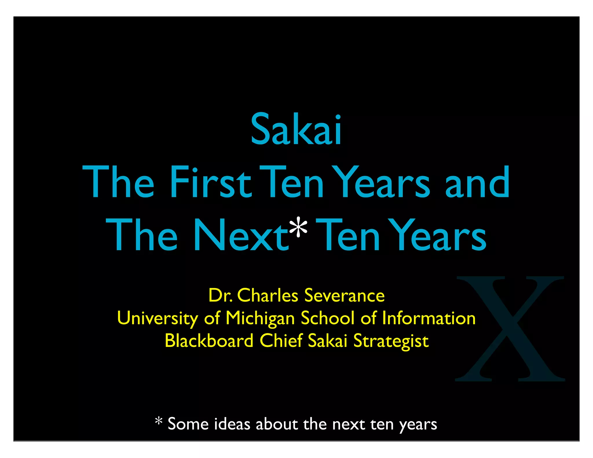 This document discusses the past and potential future of the Sakai learning management system (LMS). It summarizes Sakai's growth over the past 10 years and release of version 2.9, which established Sakai as a full-featured LMS. It then speculates on a "Sakai.X" release that could further improve scalability, performance, and the software-as-a-service model for Sakai within the next 10 years through increased collaboration between institutions. However, it notes these ideas are just one person's thoughts and would require collective effort to implement.