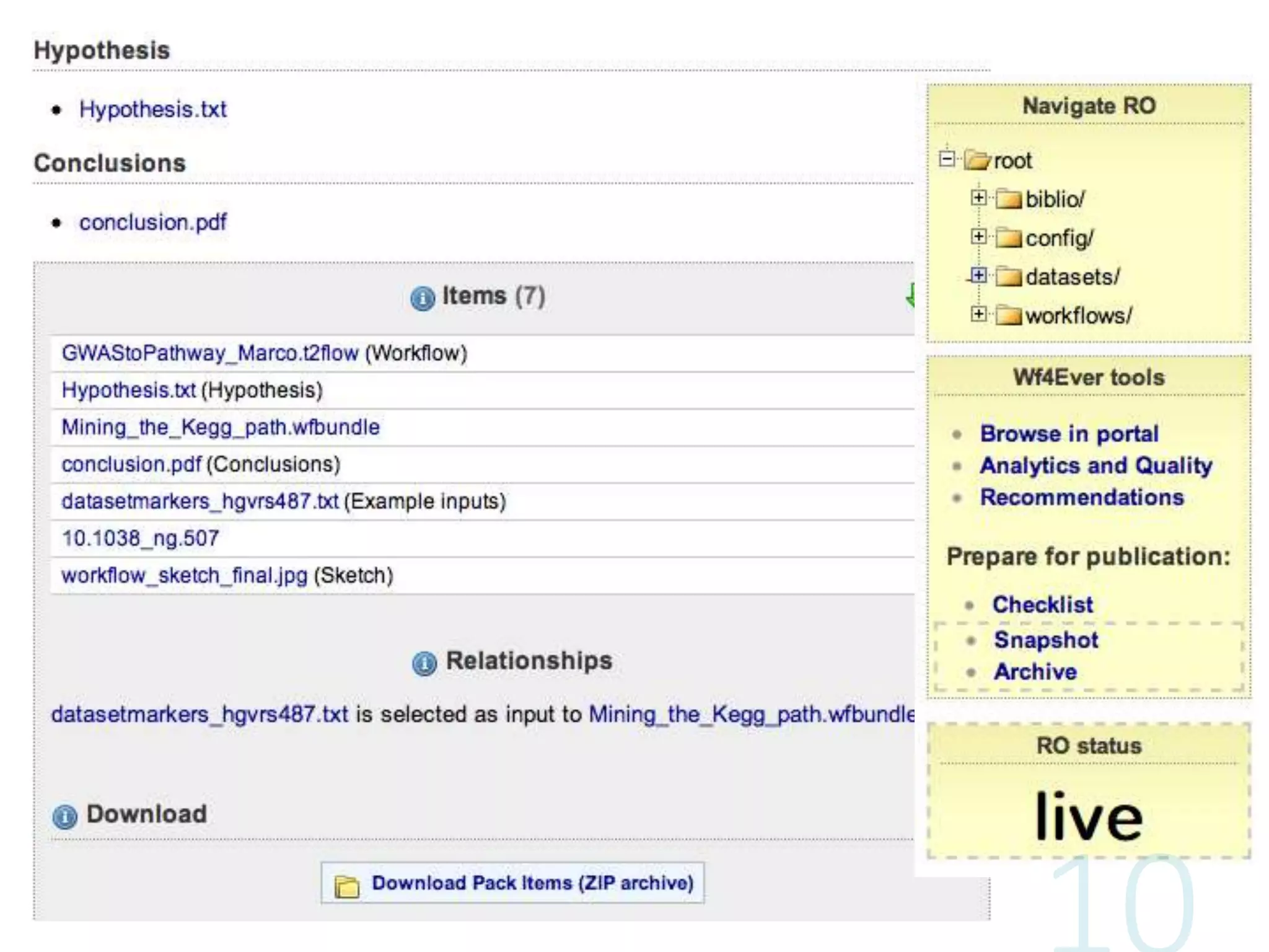 The document discusses the concept of research objects (RO), which serve to encapsulate and share all facets of scientific research, including data, methods, and annotations, thereby promoting reproducibility and collaboration in scientific workflows. It emphasizes the importance of provenance, or tracking the history and origins of research materials, to ensure credibility and facilitate peer review. Additionally, it outlines the architecture and components needed to create and utilize ROs effectively in research environments.