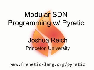The document discusses Pyretic, a high-level programming language for Software Defined Networking (SDN) that provides abstractions for easier management of network policies using OpenFlow. It highlights the advantages of Pyretic, such as modularity and portability, while also addressing the limitations of traditional low-level programming interfaces in SDN. Pyretic aims to simplify the process of defining, managing, and dynamically altering policies for network traffic efficiently.