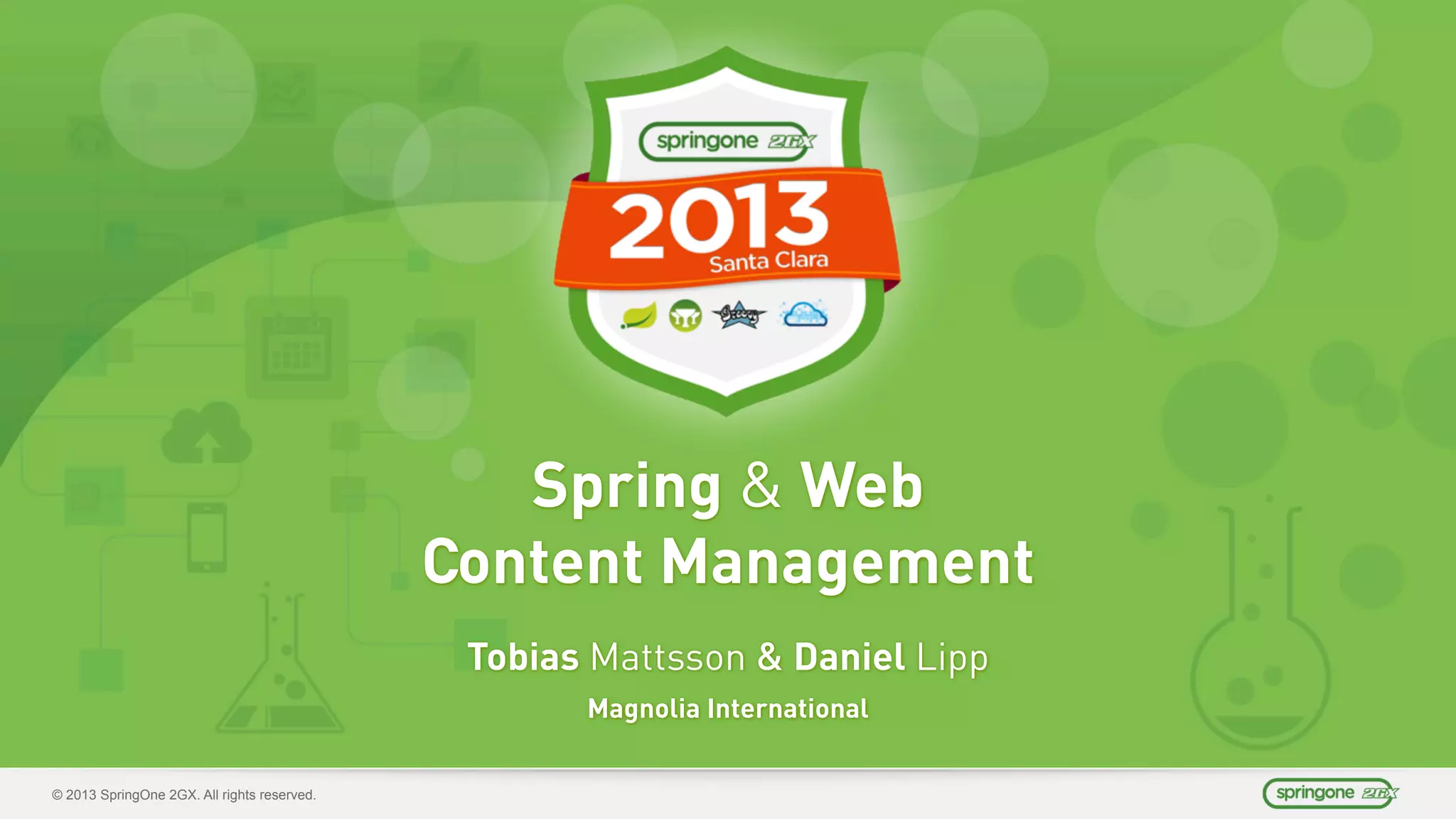 The document presents an overview of the integration of Magnolia CMS with the Spring framework, detailing various features such as content versioning, multi-lingual support, and component templates. It discusses the significance of using Java Content Repository (JCR) for data handling, including structured queries and security measures for content management applications. Additionally, the document outlines practical examples of implementing components, templates, and dynamic dialogs to enhance web content management workflows.