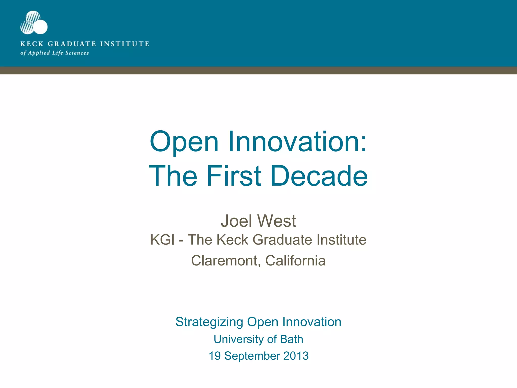 The document discusses open innovation, defining it as the purposeful exchange of knowledge to enhance internal innovation and expand external market opportunities. It outlines three key processes of open innovation: inbound, outbound, and coupled, while reviewing academic literature and examples related to each mode. The author hints at trends in open innovation research, including the need for improved measurement and understanding of performance in various contexts.
