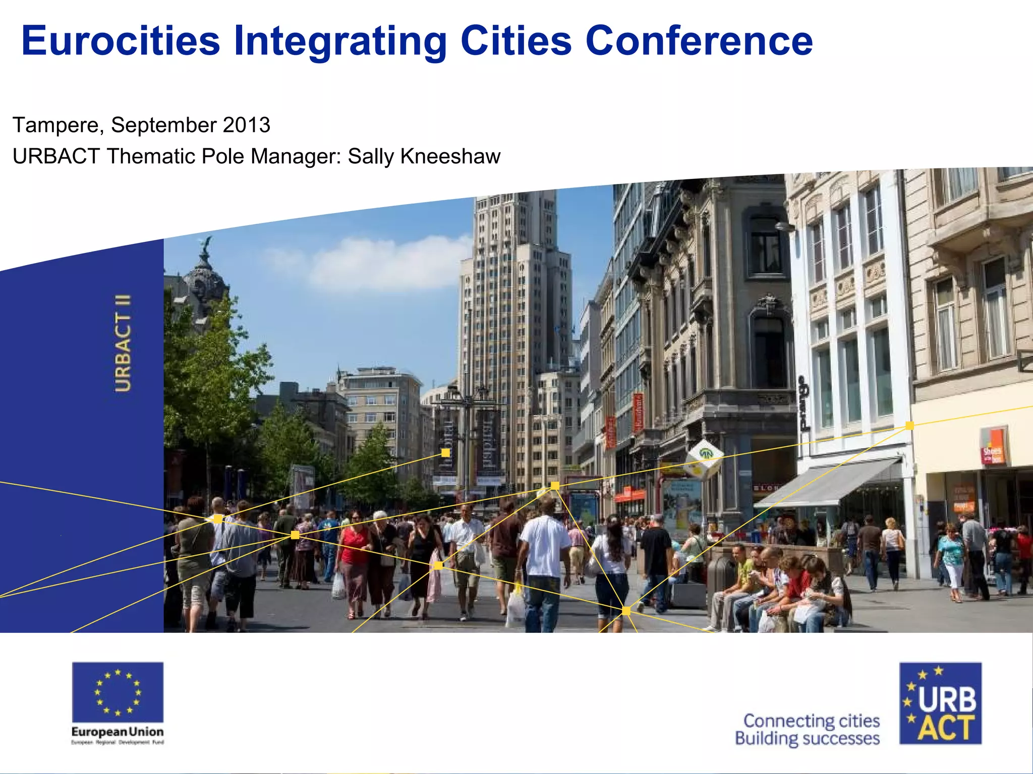 This document summarizes the URBACT Integrating Cities Conference in Tampere, Finland in September 2013. URBACT is a European program that facilitates exchange and learning between urban policymakers to promote integrated and sustainable development. It has funded several networks exploring issues of migrant integration. The conference discussed URBACT's approach of using city networks, knowledge building, communication tools, and capacity building to support cooperation between cities on migrant integration challenges.