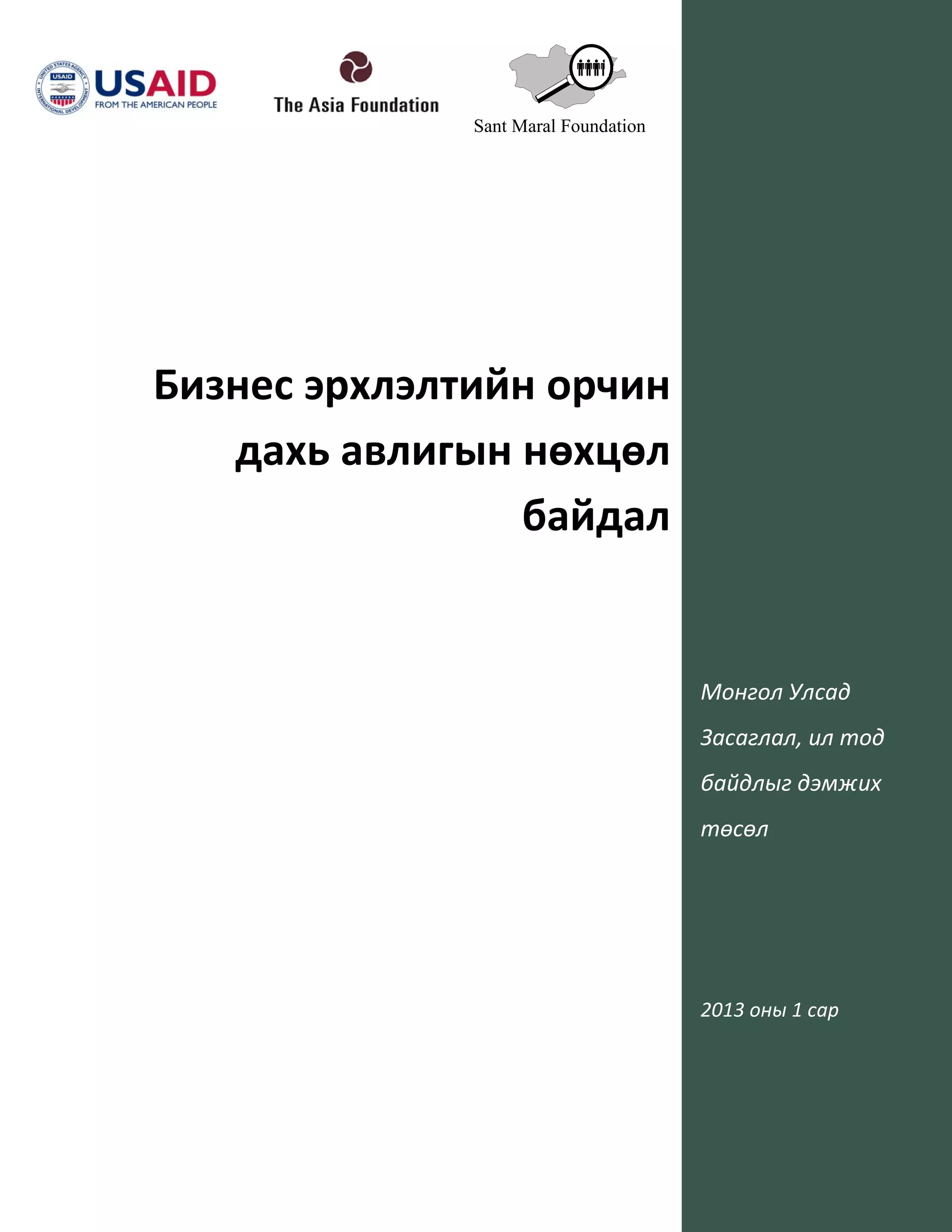 бизнес эрхлэлтийн орчин дахь авлигын нөхцөл байдлын судалгаа (2013 1)