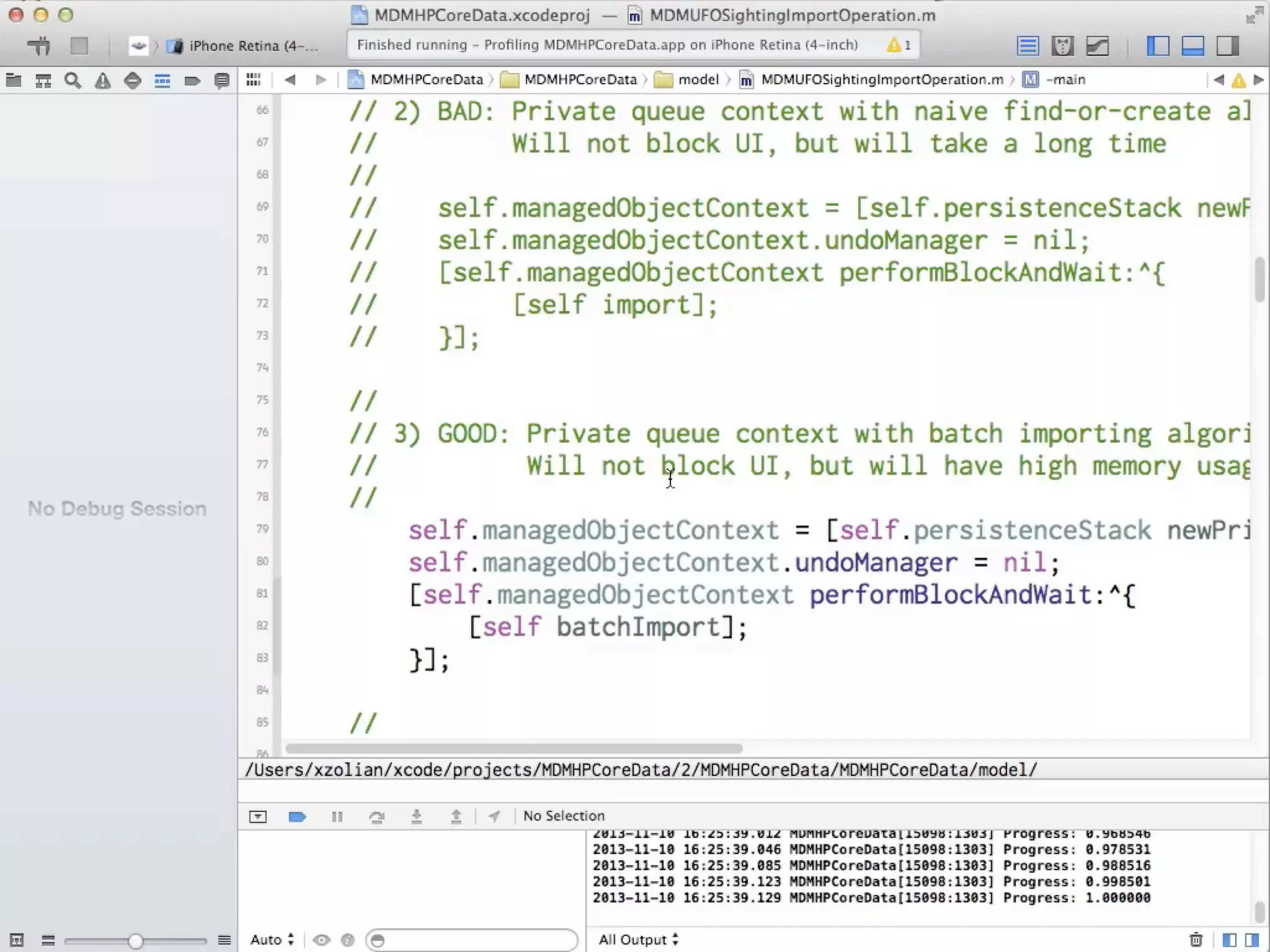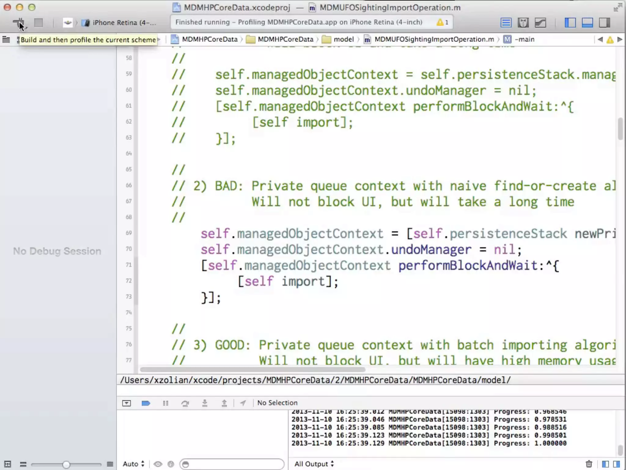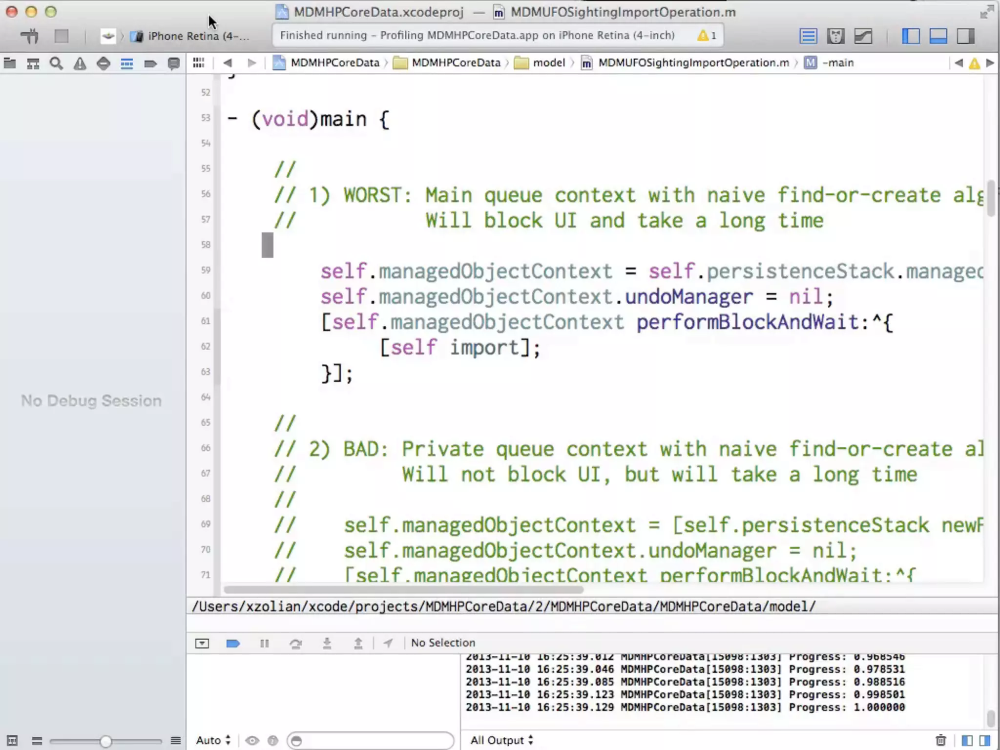 The document discusses efficient techniques for managing Core Data in applications, including strategies for fetching, importing, and processing data with a focus on performance optimization. It highlights the use of predicate costs, batch sizes, and multithreading to enhance data handling, as well as emphasizing the importance of canonicalization and efficient find-or-create algorithms. Furthermore, it covers the proper use of managed object contexts in different queue types to ensure thread safety and maximize app performance.
