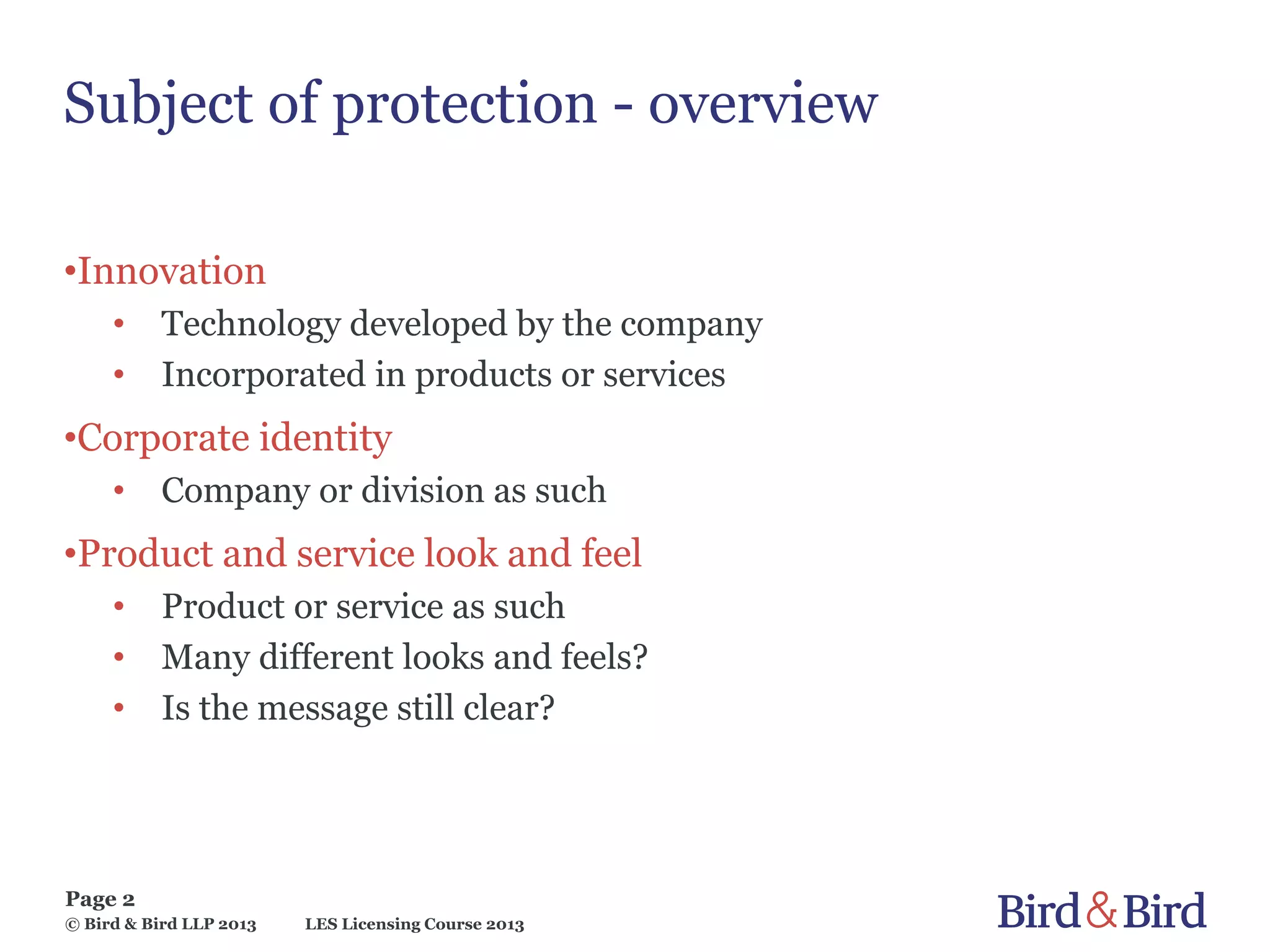 This document discusses protecting intangible assets such as intellectual property, innovation, corporate identity, and product designs. It outlines various means of legal protection including patents, copyrights, trademarks, and trade secrets. Patents protect inventions, copyrights protect creative works, and trademarks distinguish corporate and product identities. The document advises developing a comprehensive strategy for identifying valuable assets, obtaining appropriate protections, and exploiting rights through licensing to maximize their value.
