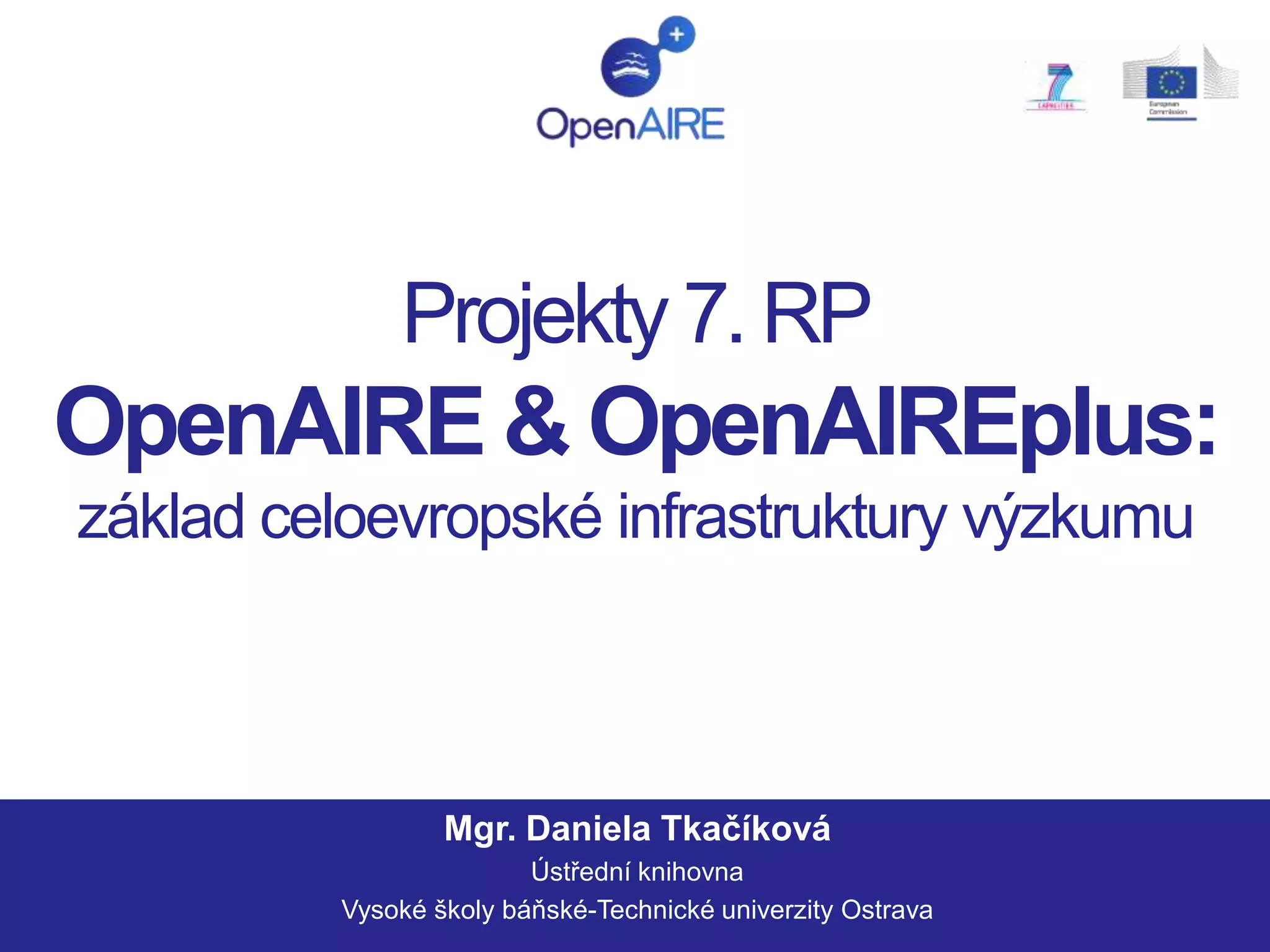 Projekty 7. RP OpenAIRE & OpenAIREplus:základ celoevropské infrastruktury výzkumu