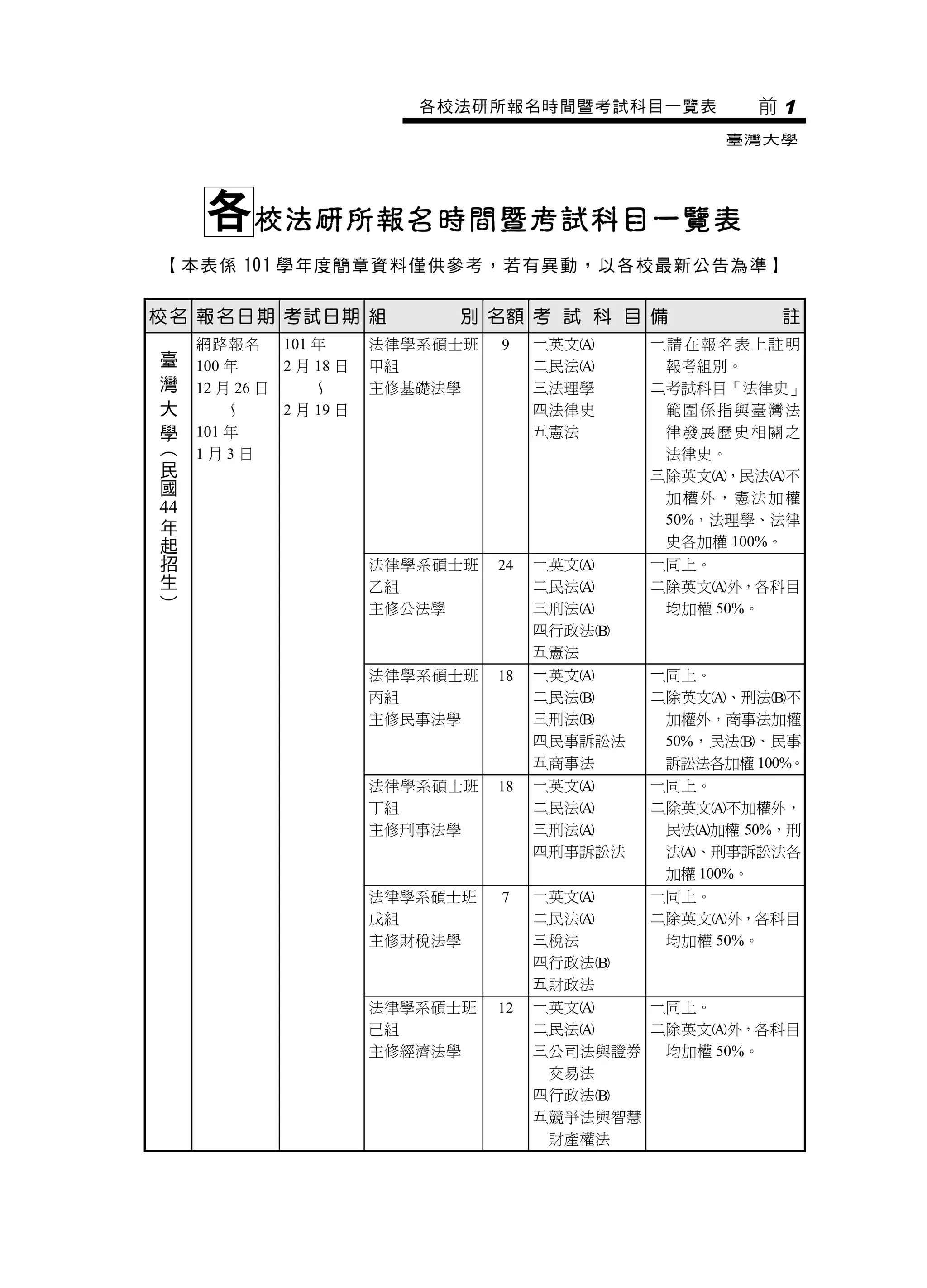 【101 臺大法研(甲、乙、丁、戊、己、庚組)】
