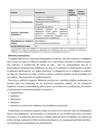 Αθνινπζεί ελδεηθηηθή θαηαλνκή ησλ δηδαθηηθώλ σξώλ αλά ελόηεηα.