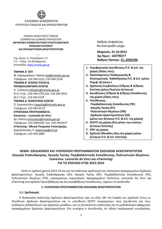 Σχεδιασμός και υλοποίηση προγραμμάτων σχολικών δραστηριοτήτων, σχ. έτους 2013-14