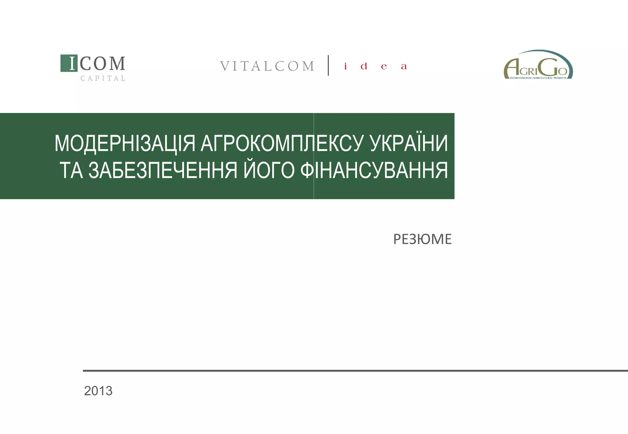 Модернизация агрокомплекса украины и обеспечение его финансирования