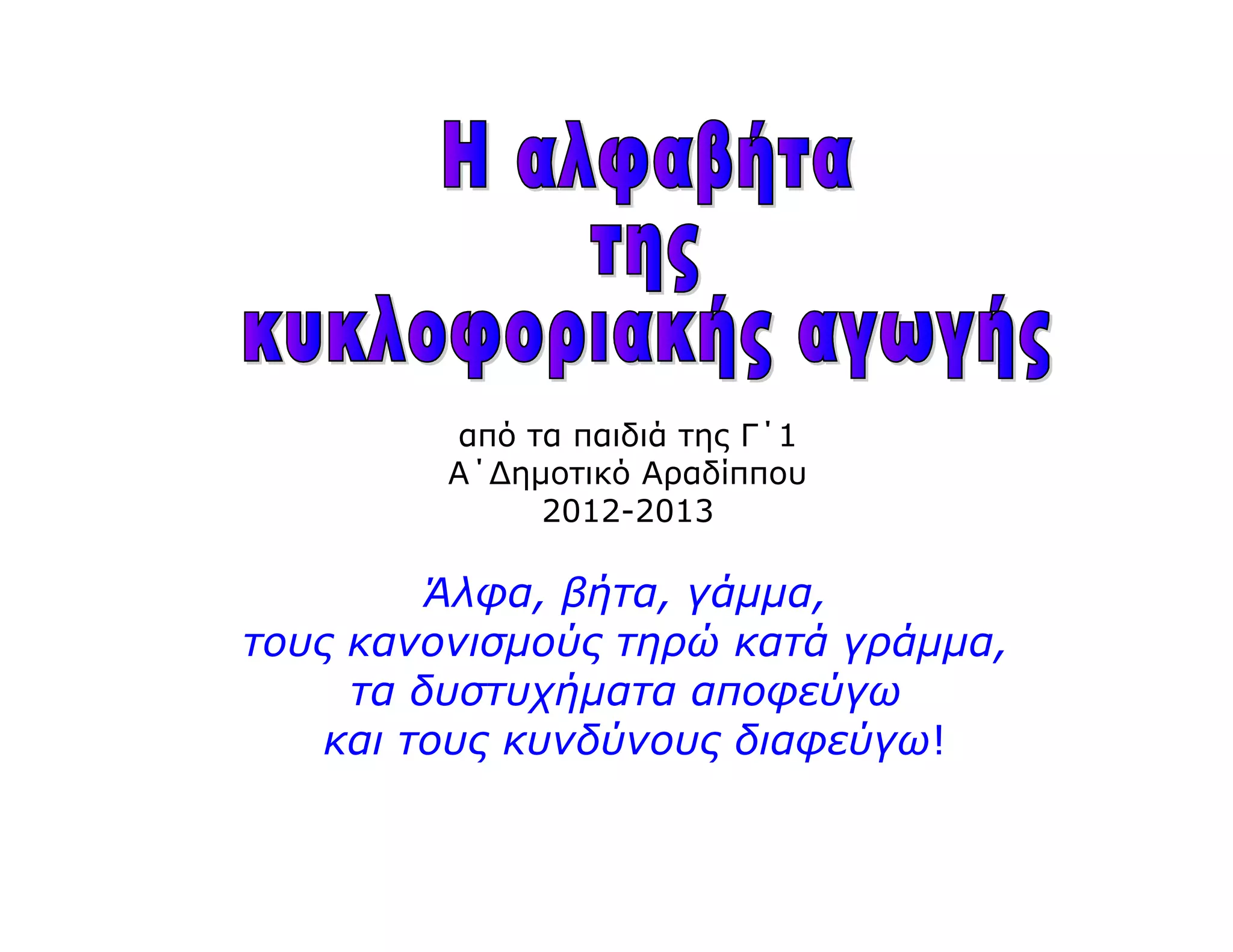 2013η αλφαβήτα της κυκλοφοριακής αγωγής γ ταξη 1. από τα παιδιά της Γ΄1