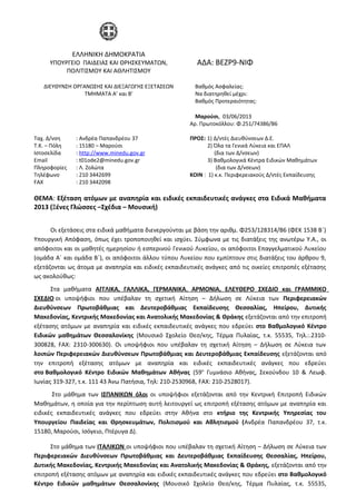λοιπών Περιφερειακών Διευθύνσεων Πρωτοβάθμιας και Δευτεροβάθμιας Εκπαίδευσης εξετάζονται από