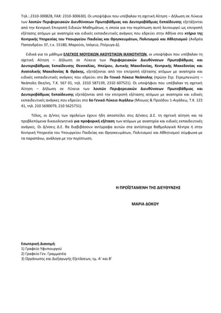Τηλ.:.2310-300828, FAX: 2310-300630).Οι υποψήφιοι που υπέβαλαν τη σχετική Αίτηση – Δήλωση σε Λύκεια
