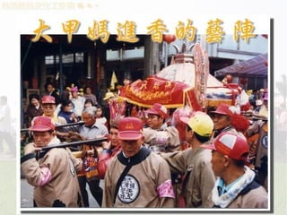 本文件探讨了妈祖信仰的起源和发展,包括她的生平、信仰及在台湾文化中的重要性。文中详细描述了妈祖的封号、信仰的演变及其在地方化中的表现,尤其是在进香活动中的地域差异和社会功能。大甲妈祖进香活动被誉为宗教活动中的盛事,并强调了信徒们在进香过程中所承载的情感与愿望。