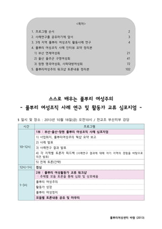 1) 사업취지, 풀뿌리여성주의 웍샵 요약 보고