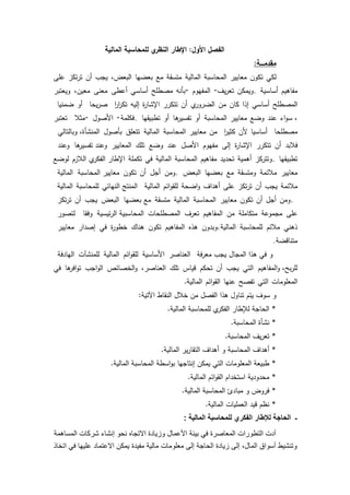 يتناول هذا المستند أساسيات المحاسبة المالية ومعاييرها، موضحًا أهمية استخدامها في المؤسسات. كما يناقش كيفية تحقيق التناسق بين المعايير وتطبيقاتها لضمان إدارة صحيحة للموارد المالية. المستند يؤكد على ضرورة وجود إطار متكامل لهذه المعايير لتعزيز الفعالية في اتخاذ القرارات المالية.