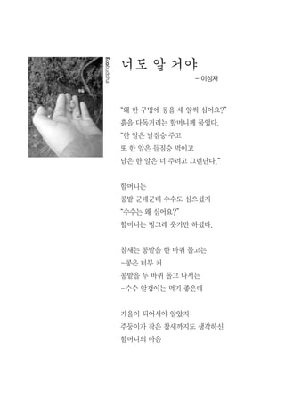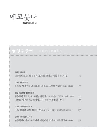 시집갈 때 필수품이 쌀통이었어요. 그러다가 짤순이로, 냉장고로 오게 됩니다. 핸드백도 명품, 가짜라도 손에 들어야 되는 사람들이 많습니다. 신발장에 안 신는 신발, 옷장 속에 안 입는 옷들이 많습니다. 그래서 우리들이 지금 쓰레기통 속에 살고 있는 겁니다. 자원낭비 그 부작용이 어마어마하게 도래하고 있습니다. 지금까지는 지구 환경의 20%인 선진국의 나라들만 그랬는데, 지금은 인구 대국인 중국도 따라가고 인도도 따라가고 멕시코 브라질도 따라오고 있습니다. 젊은 사람들은 자기 생전에 지구 종말을 보게 될 수도 있습니다. 이렇게 되지 않으려면 소비를 줄이는 것이 유일한 해결책입니다. 그런데도 아직 전 세계가 성장에 혈안이 되어 있는 것이 현실입니다.