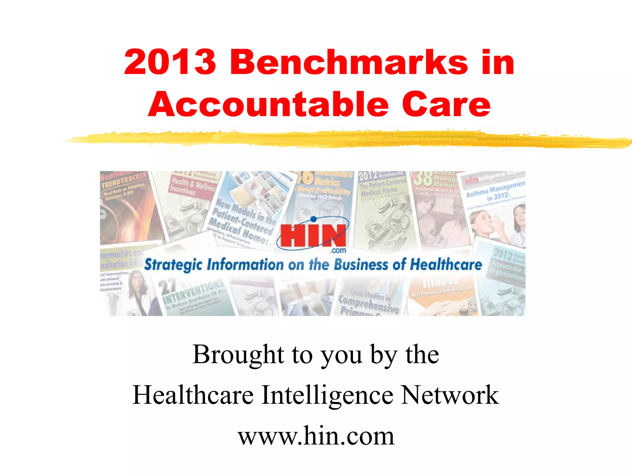 The 2013 benchmarks in accountable care indicate that participation in accountable care organizations (ACOs) has reached 34%, with significant growth in ACOs led by physician-hospital organizations. Key components reported include transition management and evidence-based care, with clinical outcomes being a crucial success measure. The survey highlights successful ACO achievements, including reduced hospital readmissions and improved performance metrics.