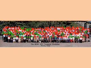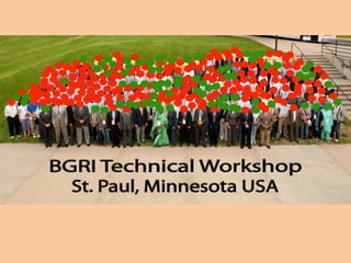 The document shows statistics on the percentage and number of female participants at BGRI technical workshops from 2009 to 2013. The percentage of female participants has nearly doubled from 2009 to 2013, increasing from under 10% to over 30%. Similarly, the absolute number of female participants has more than doubled over this period, rising from under 20 to over 80.