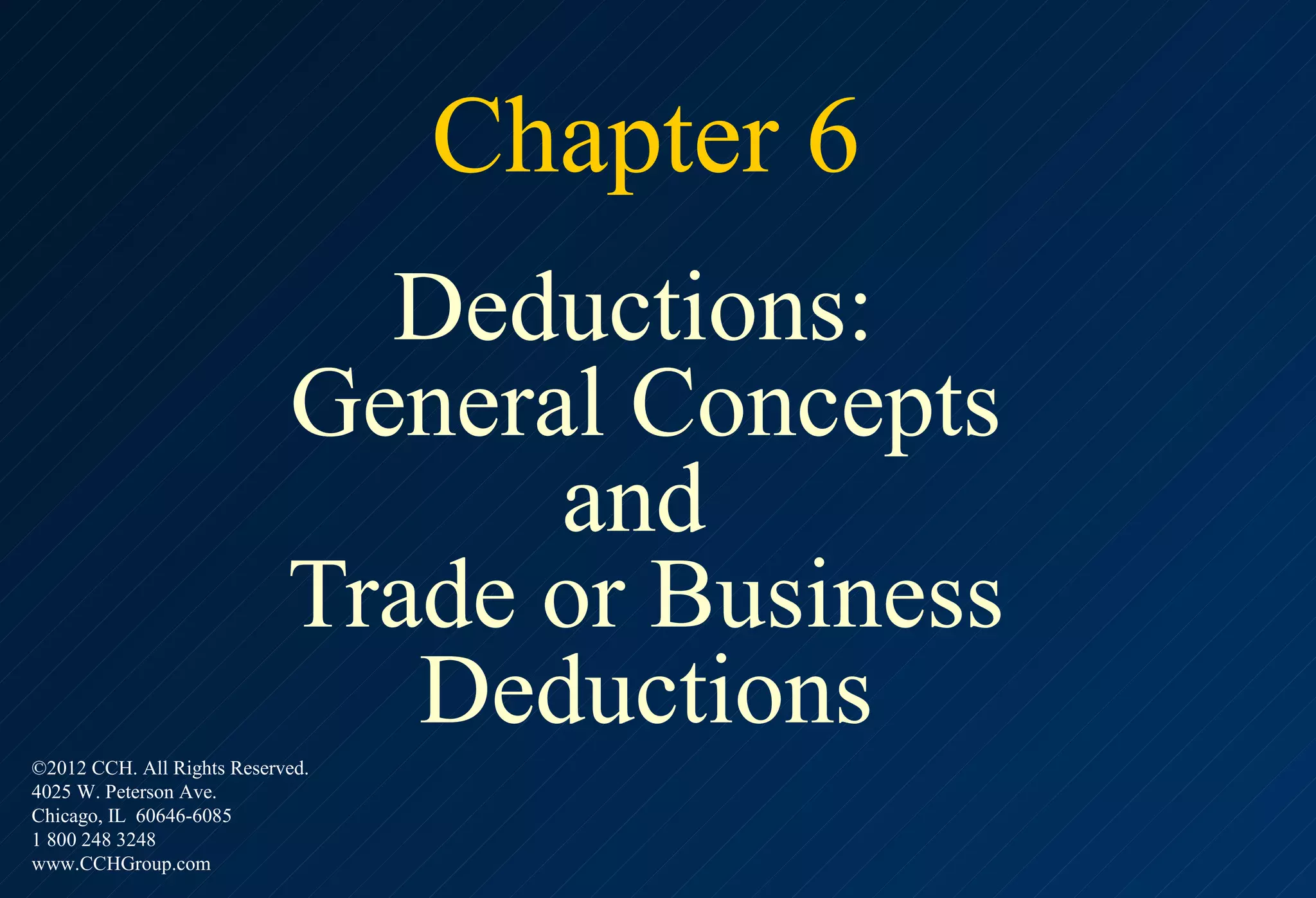 This document discusses various types of deductions allowed for individuals, including trade or business deductions, deductions for producing income, and deductions for losses. It provides examples of expenses that fall under each category and whether they are deductible "above the line" or "below the line" on a tax return. The document also examines business investigation and start-up expenses in more detail, outlining how they are treated depending on whether the business is similar or new.