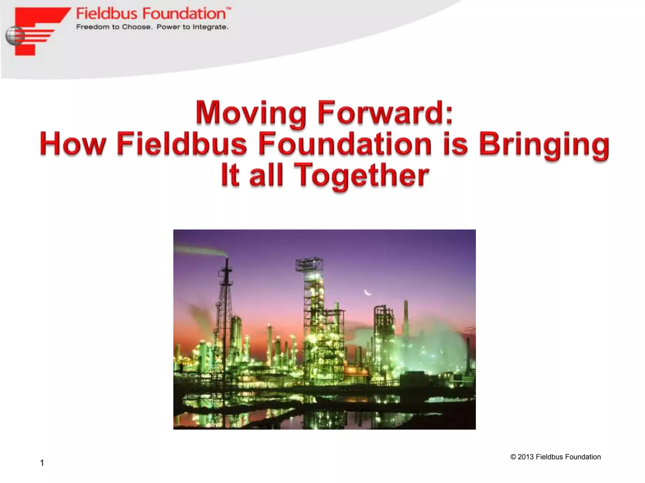 This document discusses the benefits of FOUNDATION fieldbus technology across the entire plant lifecycle from engineering to operations. It highlights cost savings from reduced engineering costs, faster commissioning, improved maintenance through predictive diagnostics, and the ability to modernize aging automation infrastructure. Fieldbus provides interoperability, standardized diagnostics, and a scalable architecture to integrate new and legacy devices for improved productivity.